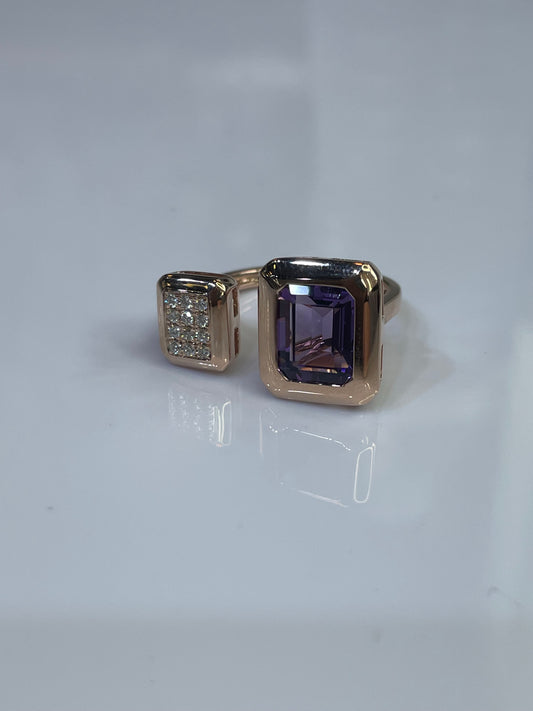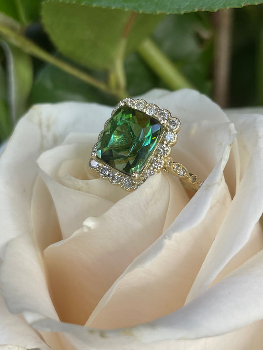 14K Yellow Gold Diamond & Green Tourmaline Ring