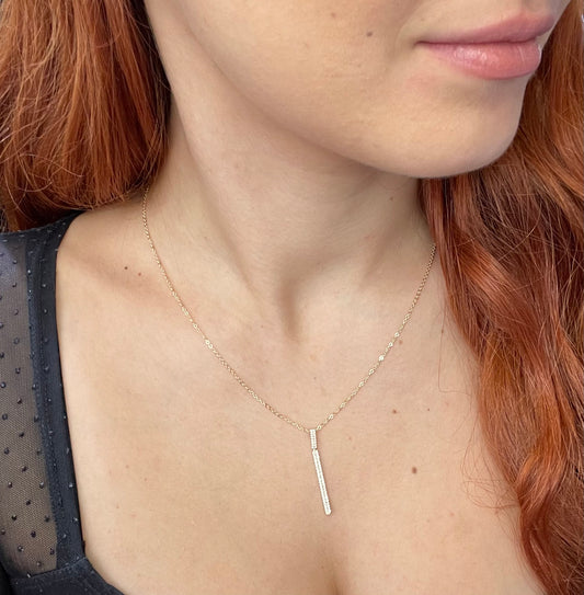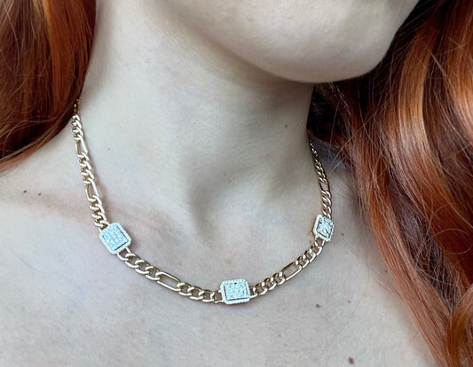 14K Yellow Gold Diamond Rectangular Plate Necklace